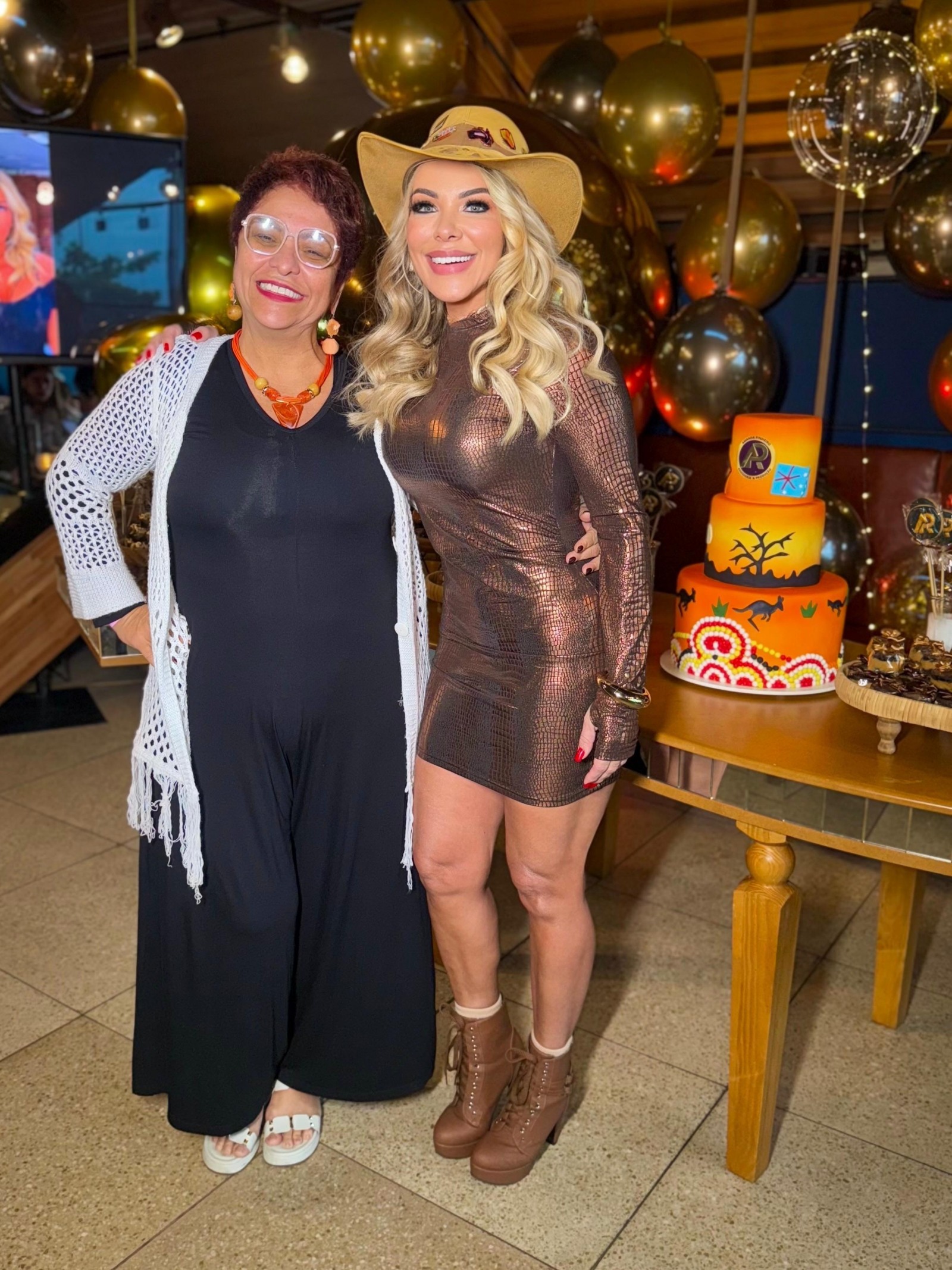 A atriz, jornalista e produtora Amanda Pinheiro celebrou seu aniversário no novo espaço Outback Rooftop Casinha na zona oeste do RJ, vestida a carater australiana.