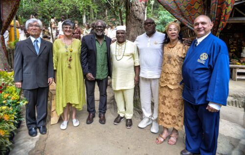 Bênção inter-religiosa – Após o rito de Ifá, a celebração ganhou ainda mais significado com uma bênção inter-religiosa, reunindo diferentes expressões de fé em um gesto único de unidade: O Arcebispo Kyohaku Correia (Budismo Primordial/SP) destacou a sacralidade do encontro entre dois elos e lembrou que o elo da primavera, divino e além das forças humanas, é quem abençoa verdadeiramente o matrimônio. Citou ainda um provérbio ancestral: “Se quiser ser feliz não case! Só case se quiser fazer o outro feliz”, encerrando com o mantra sagrado Namumyouhourenguekyou.