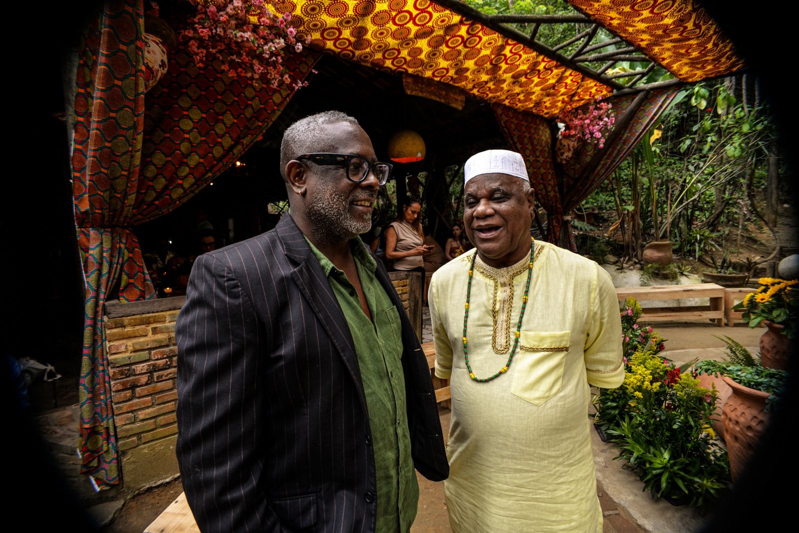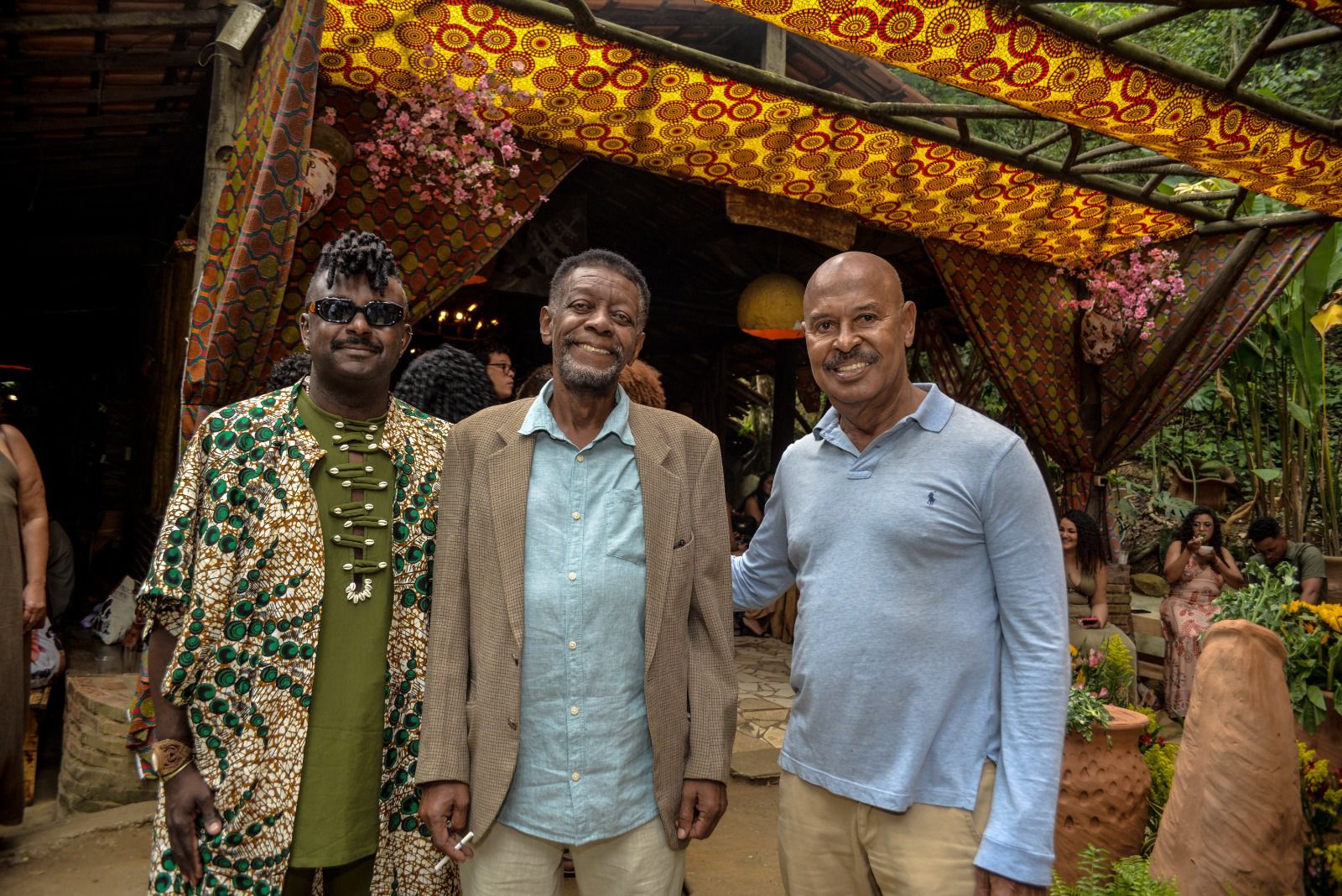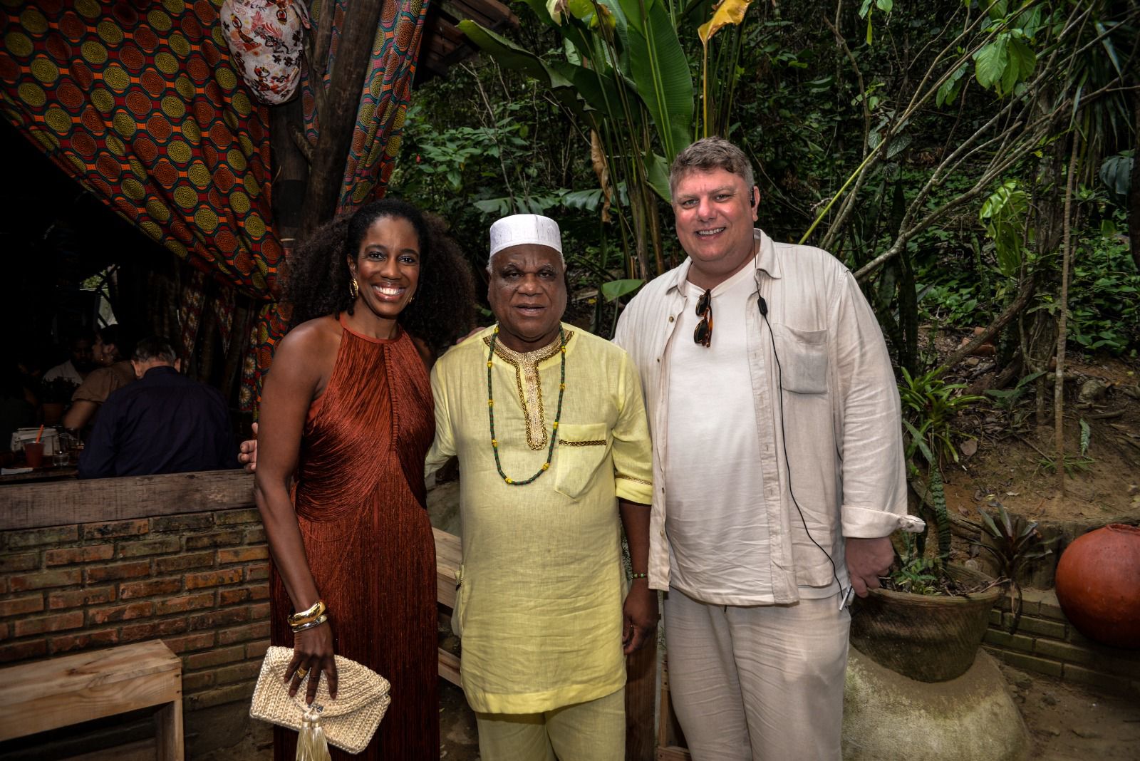 A decoração, também assinada por Leco Biagioni, privilegiou o natural e o ancestral, com tecidos africanos, vasos de barro e folhagens exuberantes, compondo uma atmosfera rústica e simbólica. Entre os convidados, estiveram nomes como Marquinhos de Oswaldo Cruz, o escritores negros como Heleana Theodoro, Jacques d’ Adesky, a atriz Maria Gal, lideranças negras, religiosas e acadêmicos.