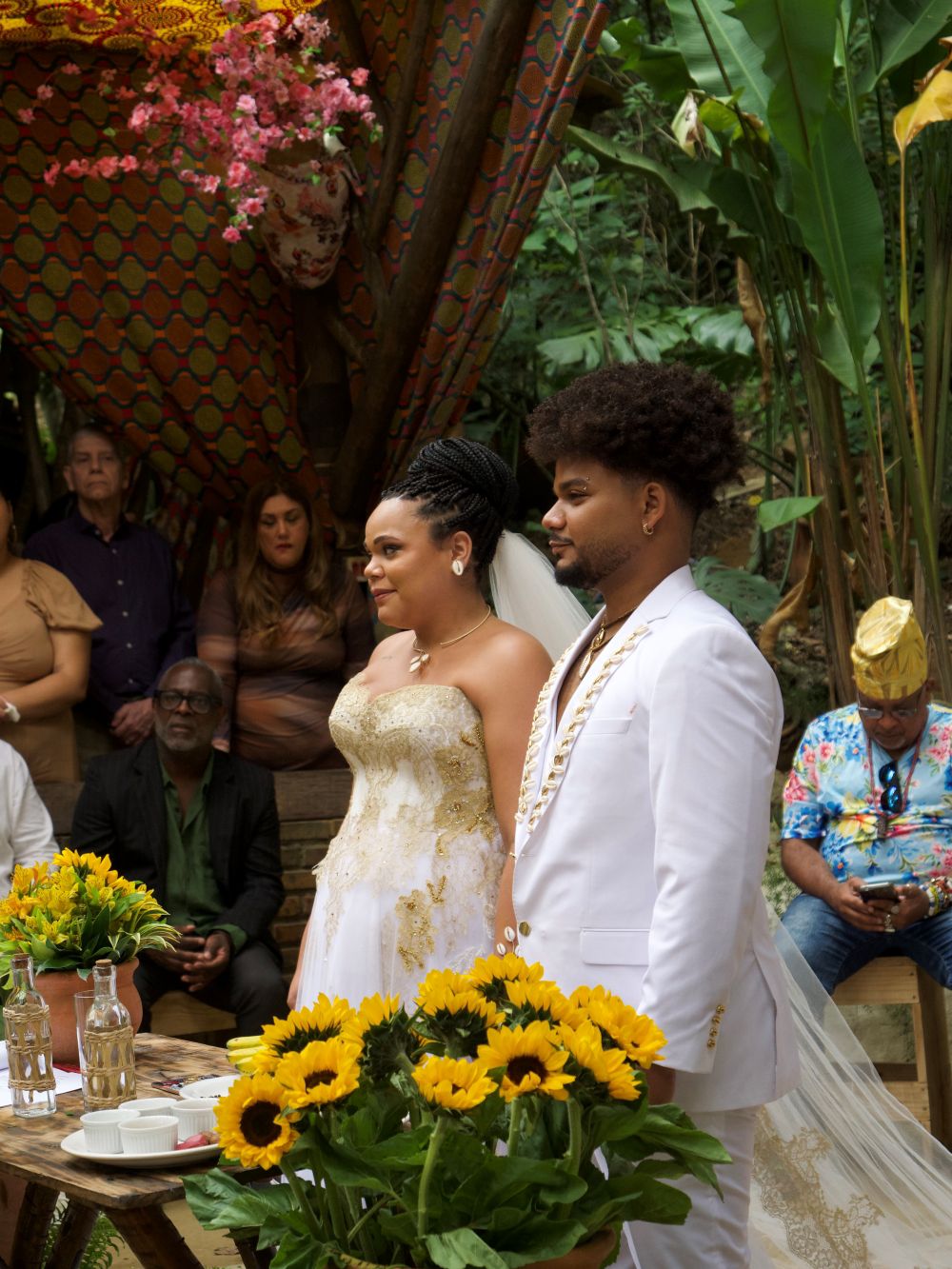 No fim, como disse um convidado: “foi uma das cerimônias mais pretas e mais lindas que já participei”. Mais do que um casamento, um ato de beleza revolucionária, um lembrete de que o amor afrodescendente tem cor, axé e território. A festa brindou com show de Awurê, reconhecidos por transformarem a música em celebração da ancestralidade e da importância das raízes africanas.”