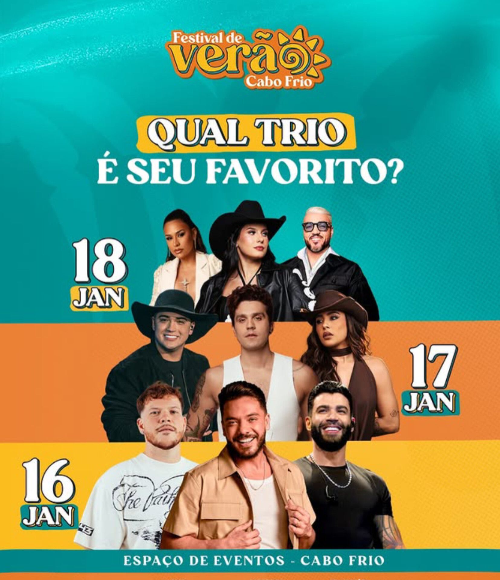 O evento acontece nos dias 16, 17 e 18 de janeiro, trazendo os principais artistas do cenário musical brasileiro em uma grande celebração à estação mais esperada do ano.