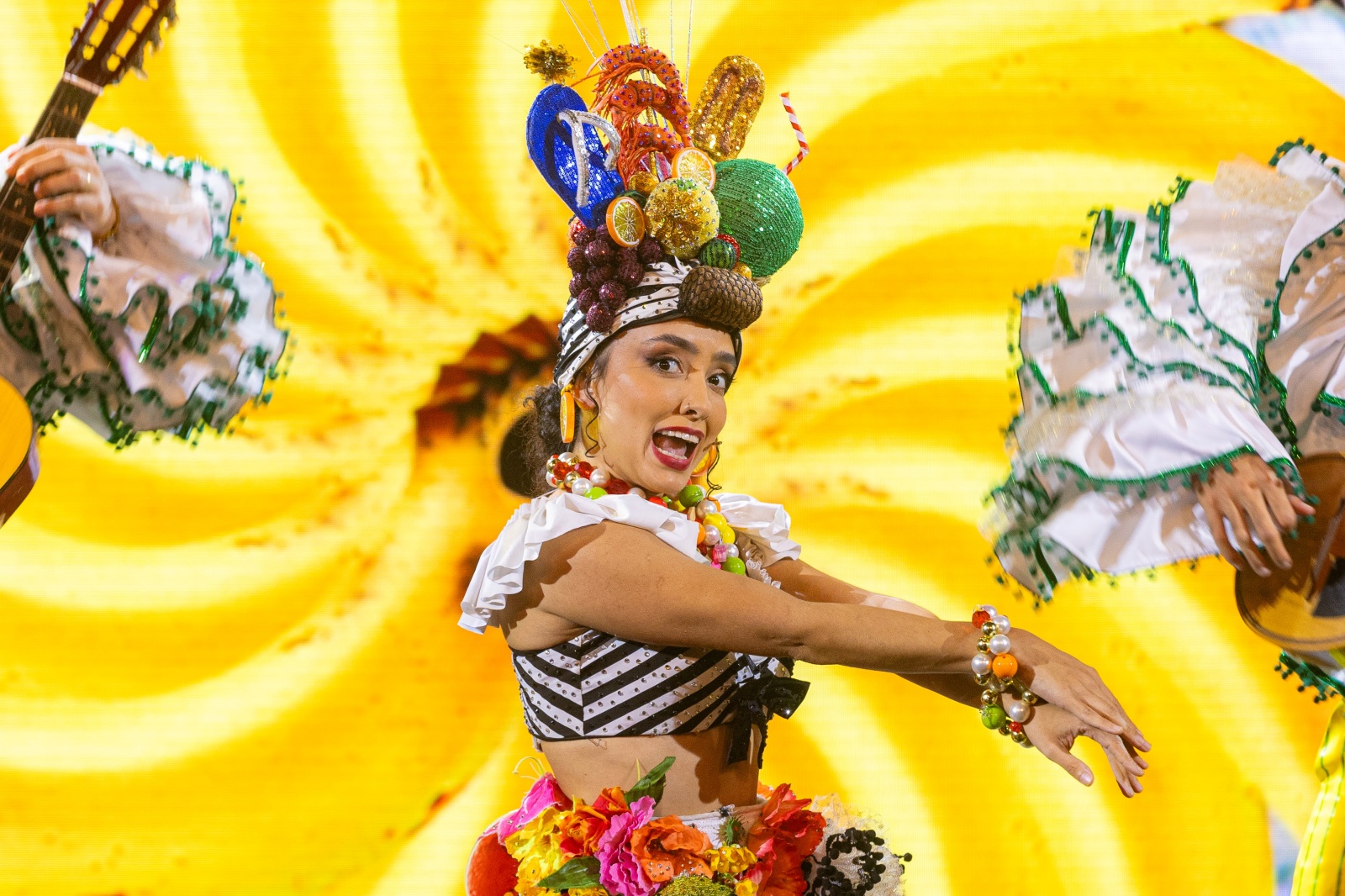 Uma viagem pelo Brasil – No palco de 400 m², um painel de LED côncavo de 210 m² e tecnologia 4D oferece uma experiência cinematográfica em 180°, levando o público a uma viagem pelas belezas do Brasil — do Pelourinho, em Salvador, às profundezas da Amazônia.