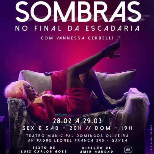Sombras no Final da Escadaria é dirigido por um mestre do teatro, Amir Haddad, e com Vannessa Gerbelli (prêmios APTR, Melhores do Ano TV Globo e Bibi Ferreira) que brilha em cena. Este é um texto inédito e o último trabalho do escritor e dramaturgo carioca Luiz Carlos Góes (1944-2014) e é uma síntese de sua obra como escritor: parece leve, mas sob camadas ou com pequenas pistas estão a crueldade e a denúncia do comportamento humano, como abusos e misoginia.